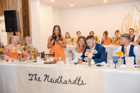 The weather couldn’t have been more perfect for a summer wedding. Picture a warm, sunny, and glowing day with natural light. Every detail throughout the day was so thoughtful and meaningful. From the sweet little fans given to guests to stay cool, to the touching tribute in honor of Logen’s dad, and the heartfelt speeches shared by Sydney’s father, every moment was a reminder of just how loved and supported this couple is.
